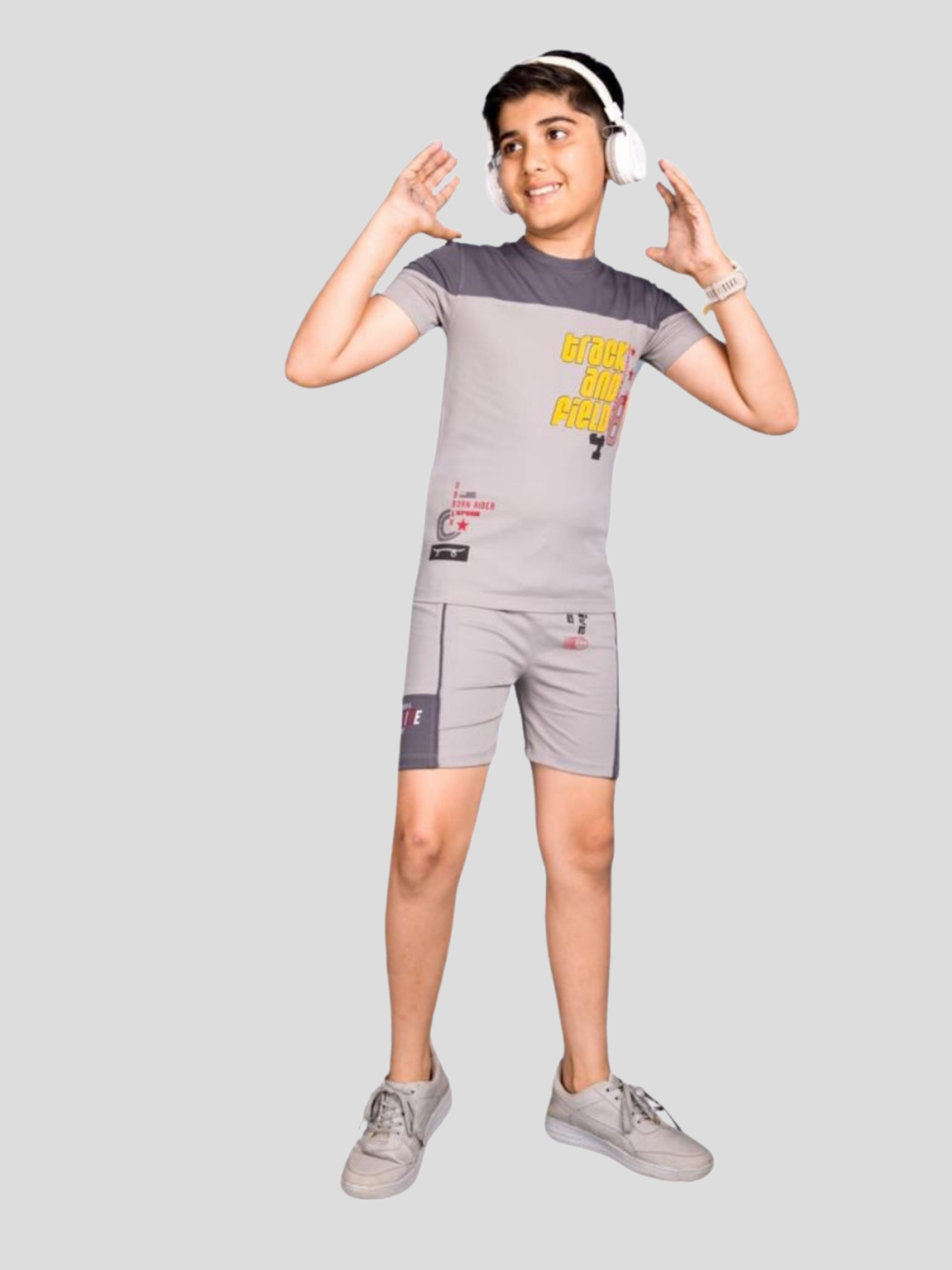 YOUTH ROBE Kids Multi Color Co-Ord Set (Dark Grey and Light grey)