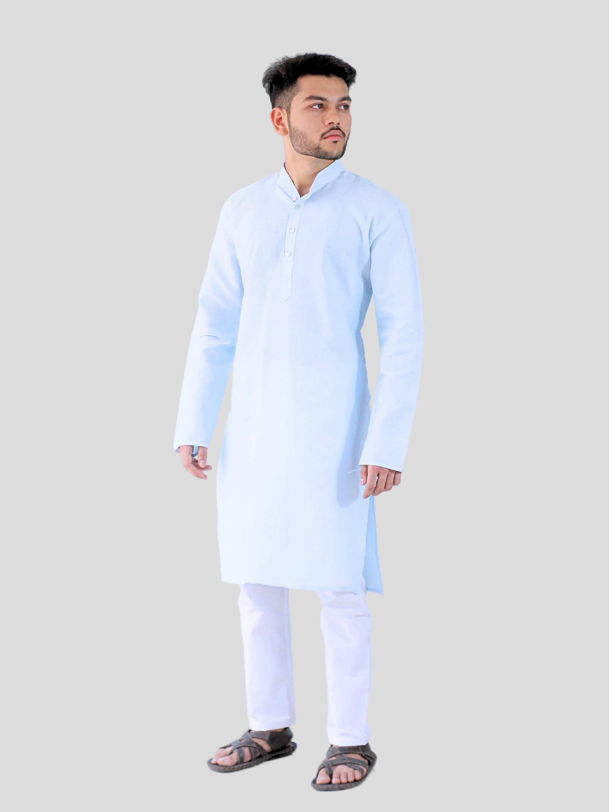 Elegant Design: Features a classic kurta with full sleeves and knee-length cut, paired with a matching pajama.