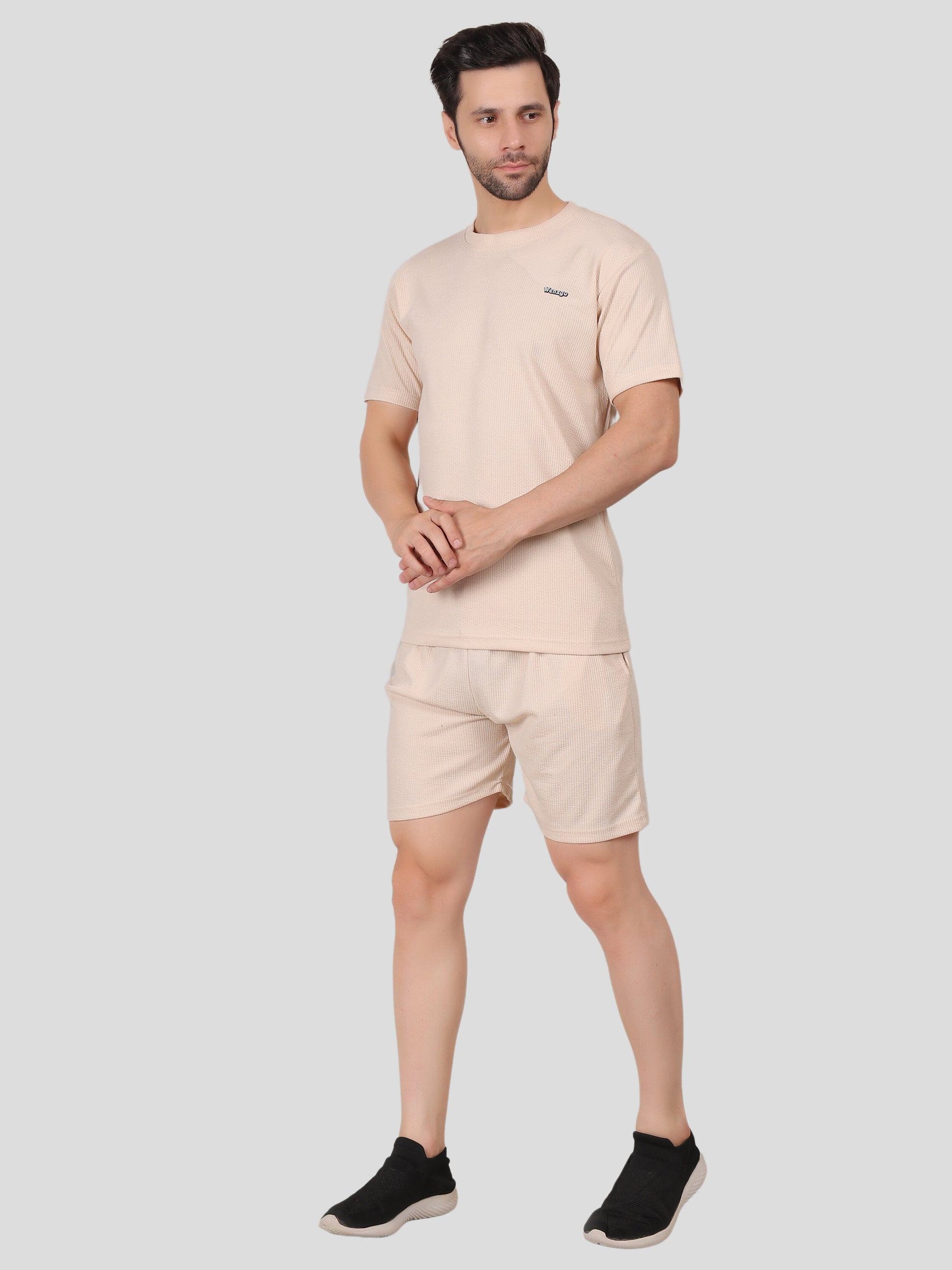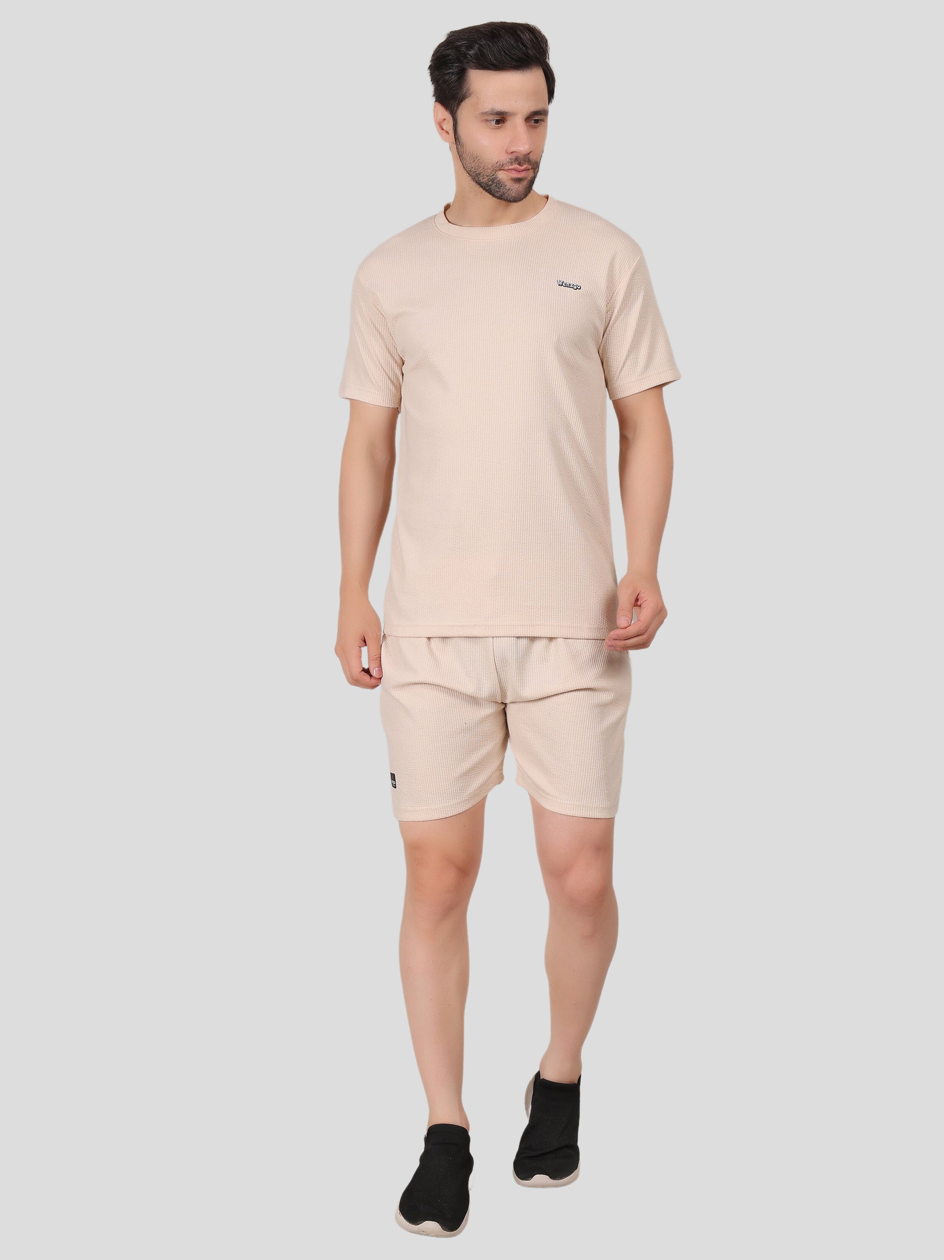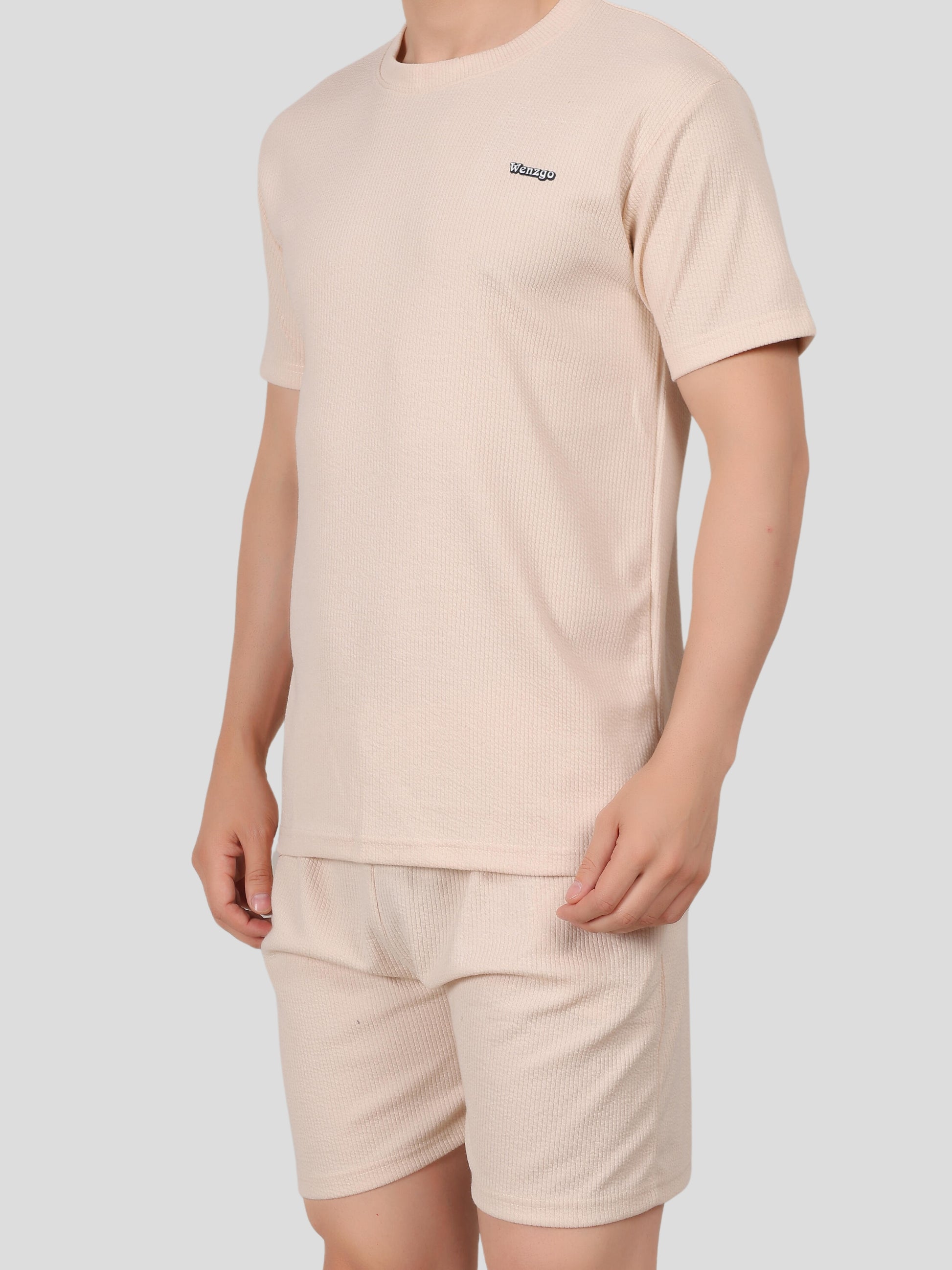 YOUTH ROBE Men's Co-Ord Set , Knitted T-Shirt and Short (Cream)