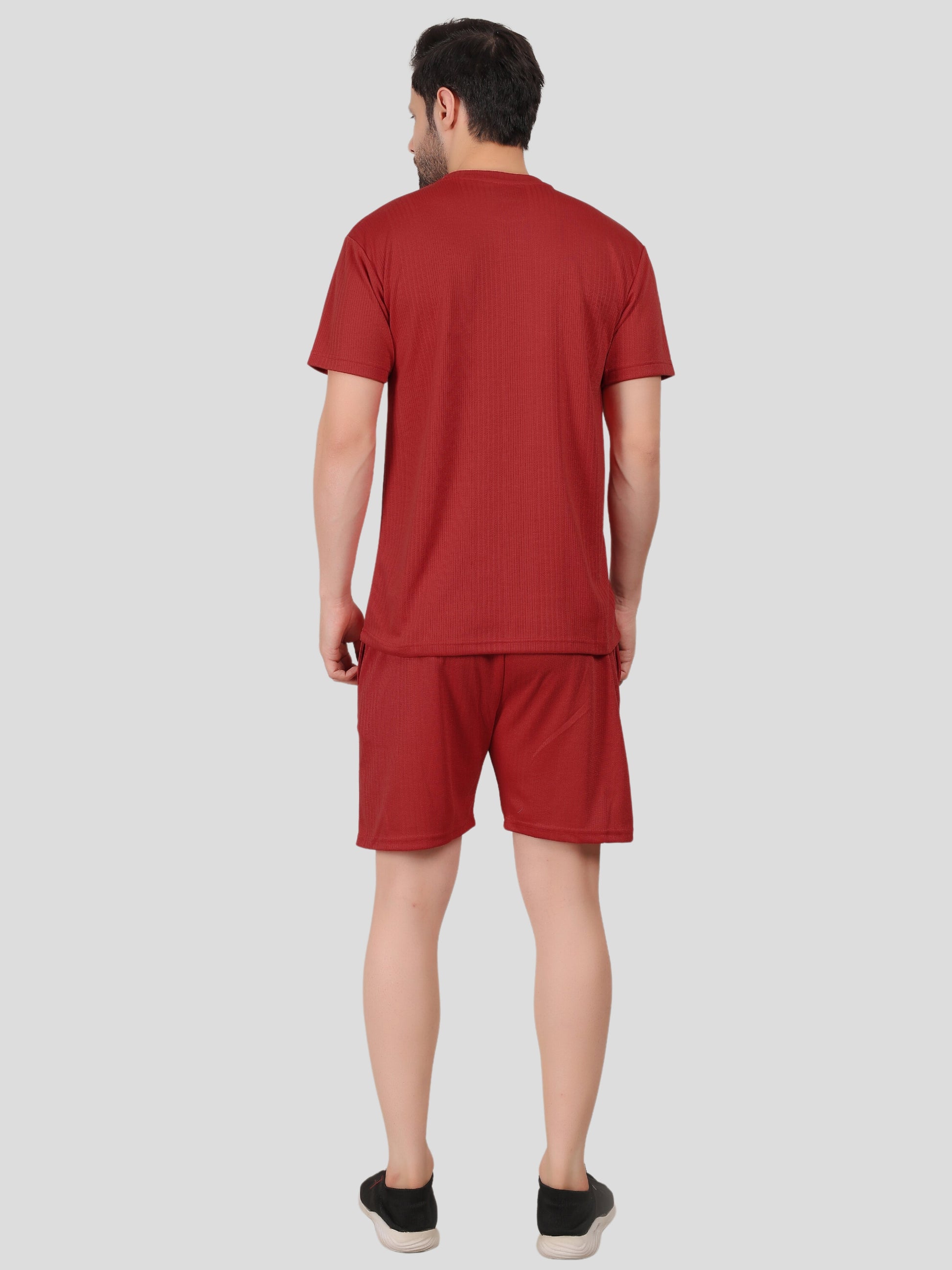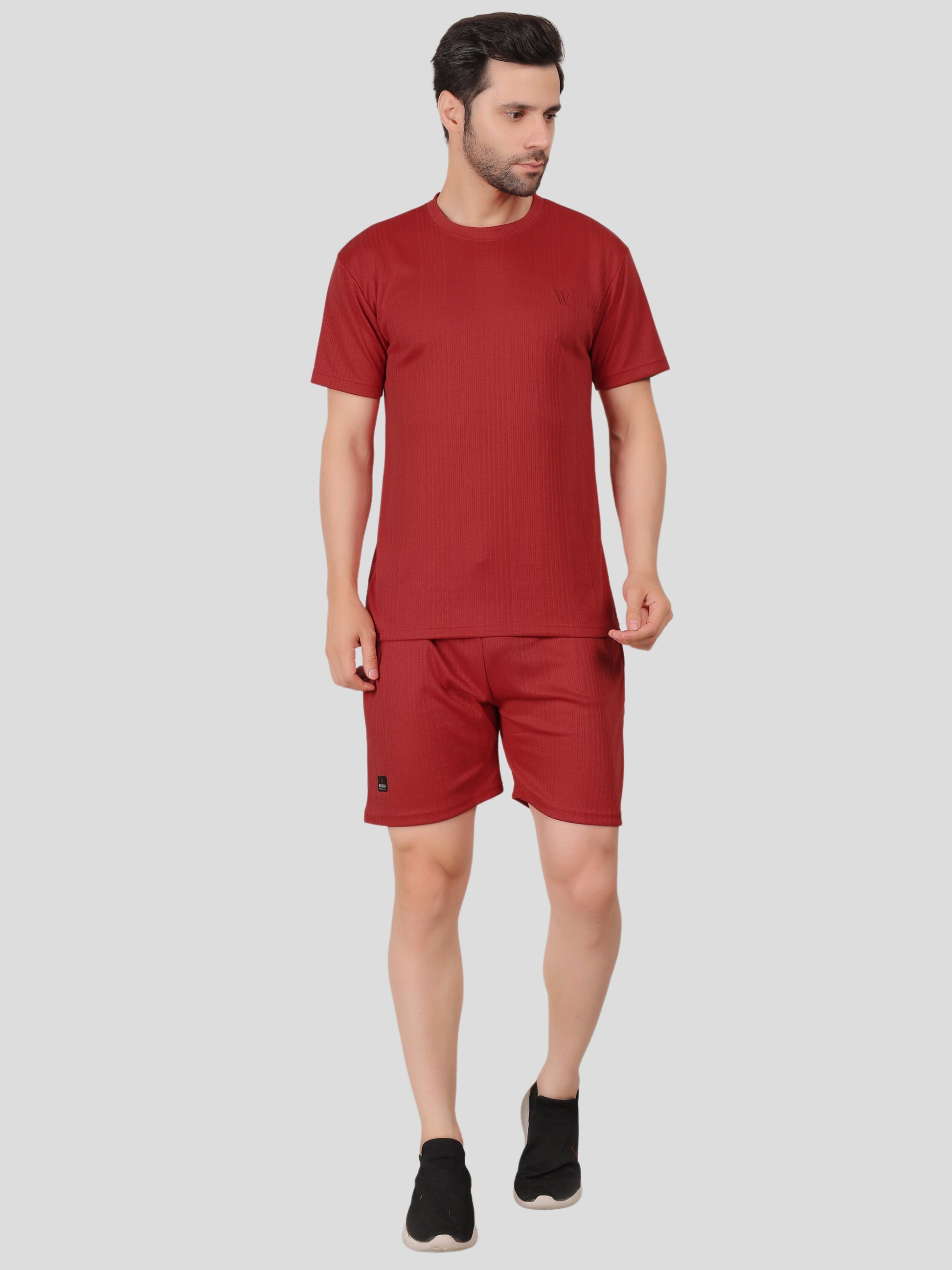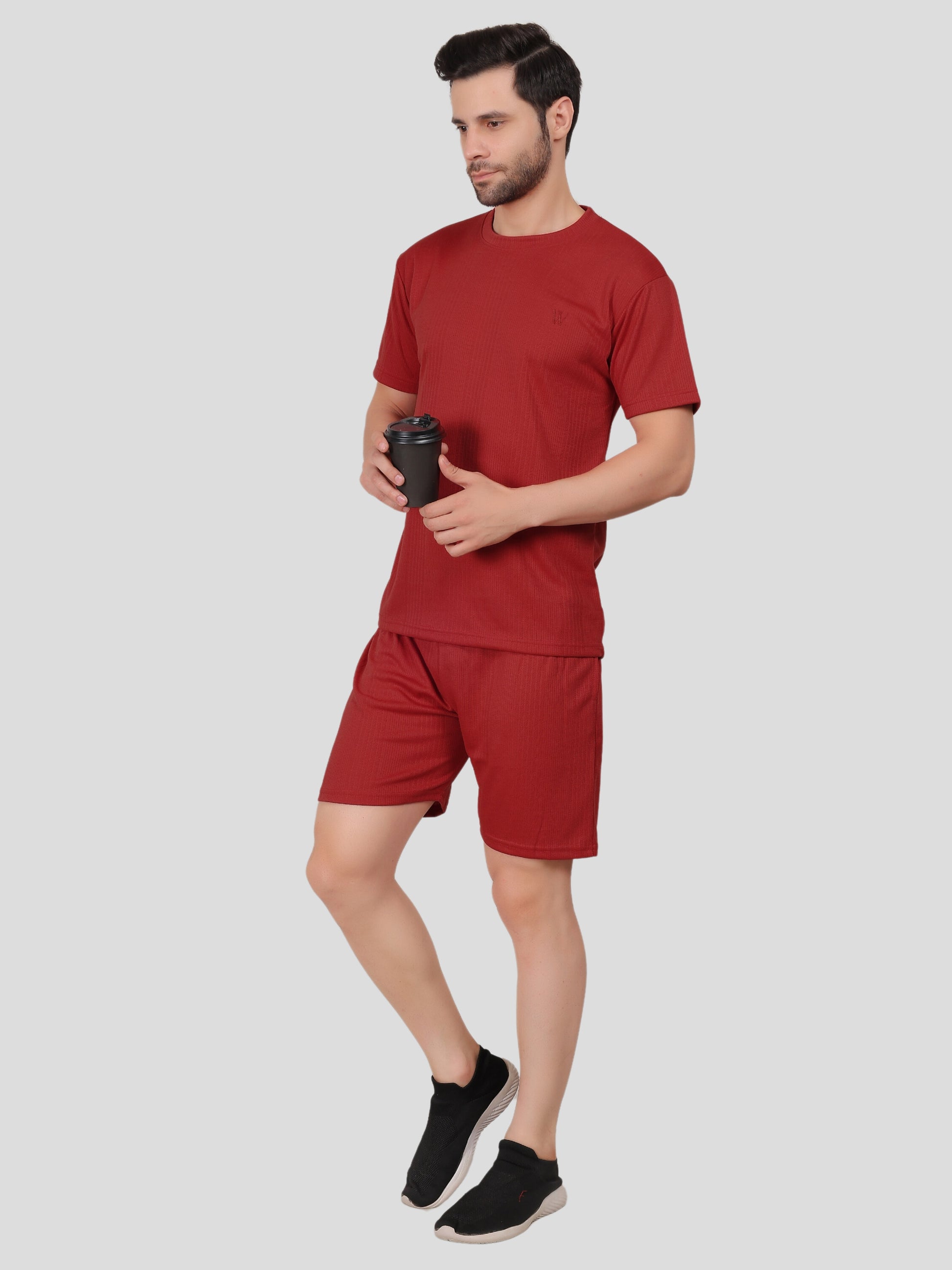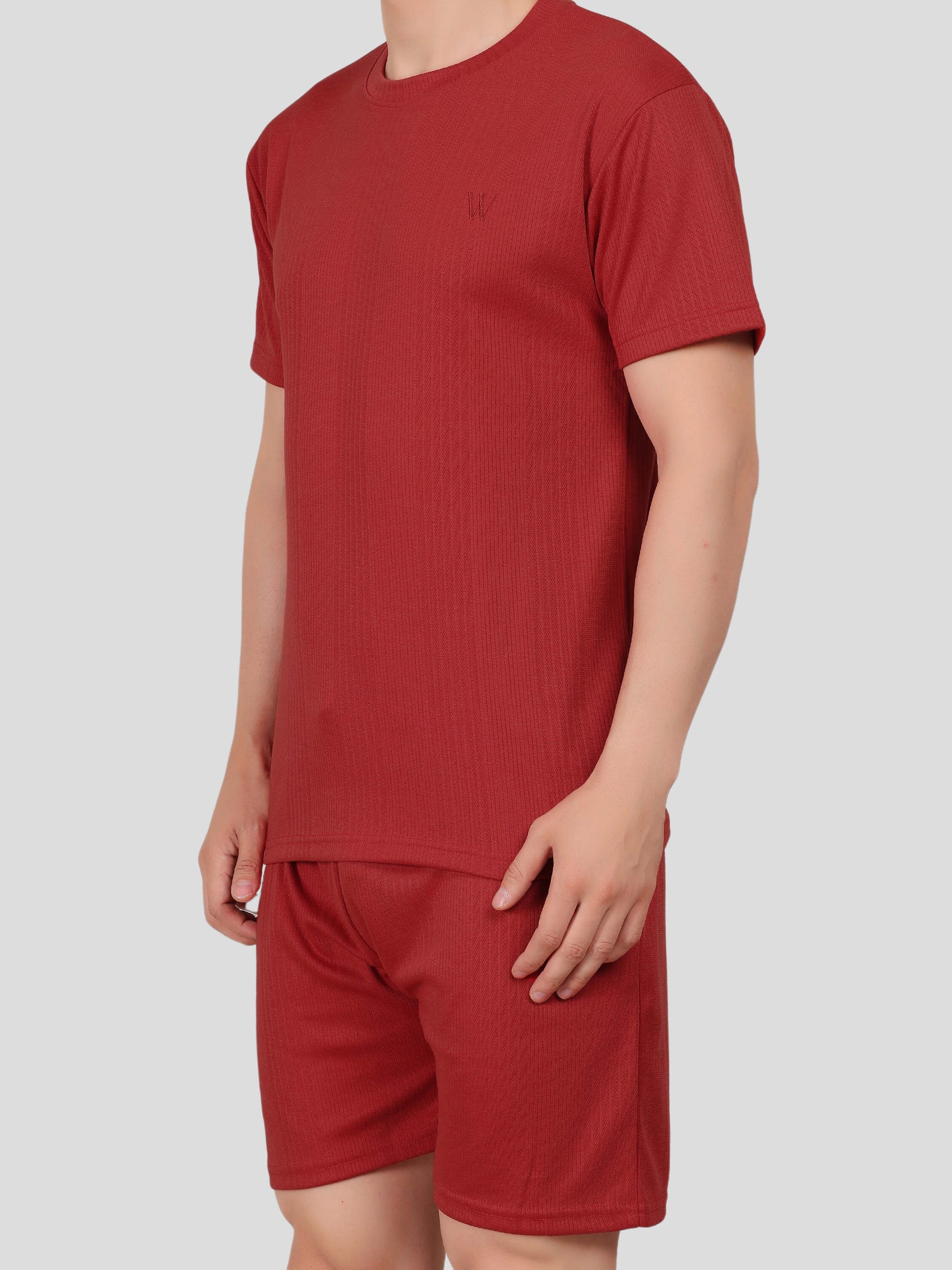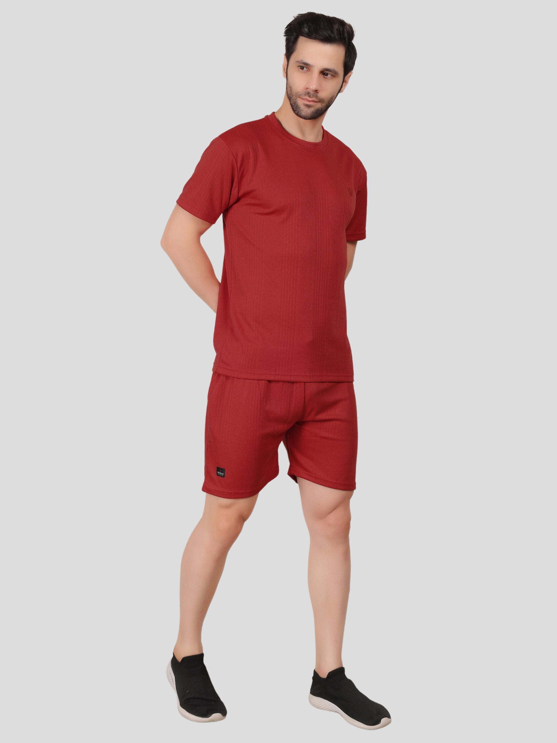 YOUTH ROBE Men's Co-Ord Set , Knitted T-Shirt and Short (Maroon)