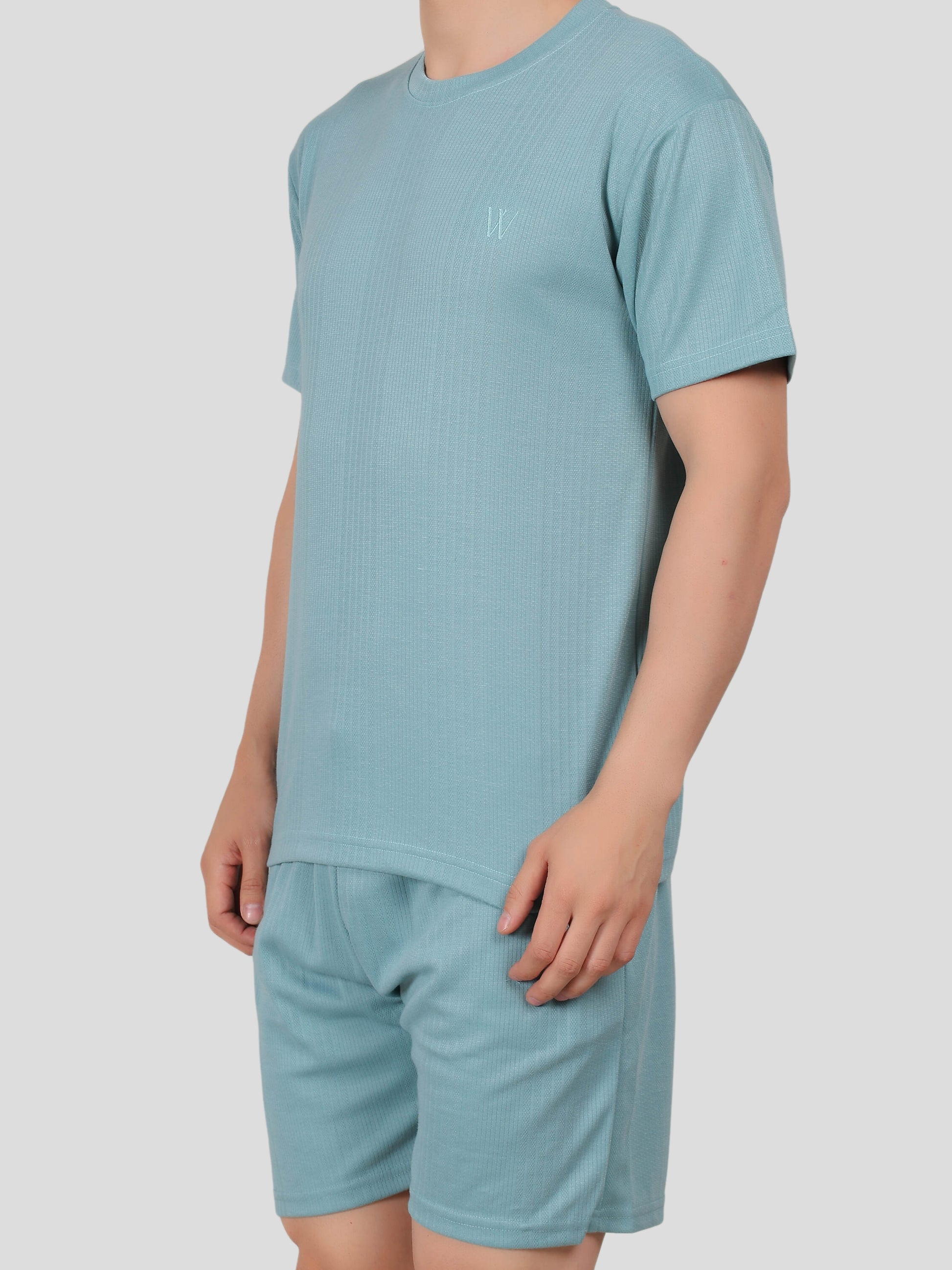 YOUTH ROBE Men's Co-Ord Set , Knitted T-Shirt and Short (Subrine Blue)