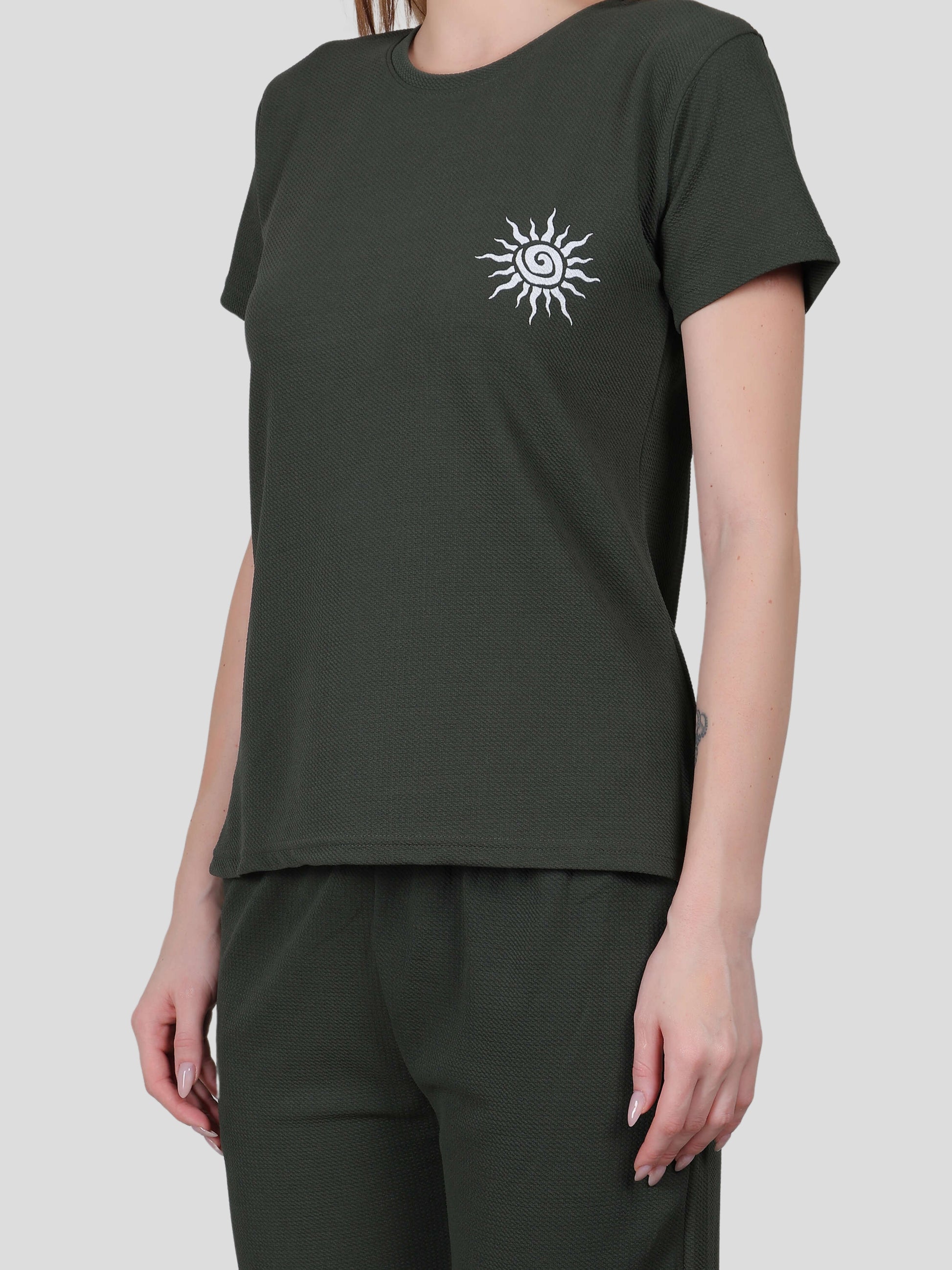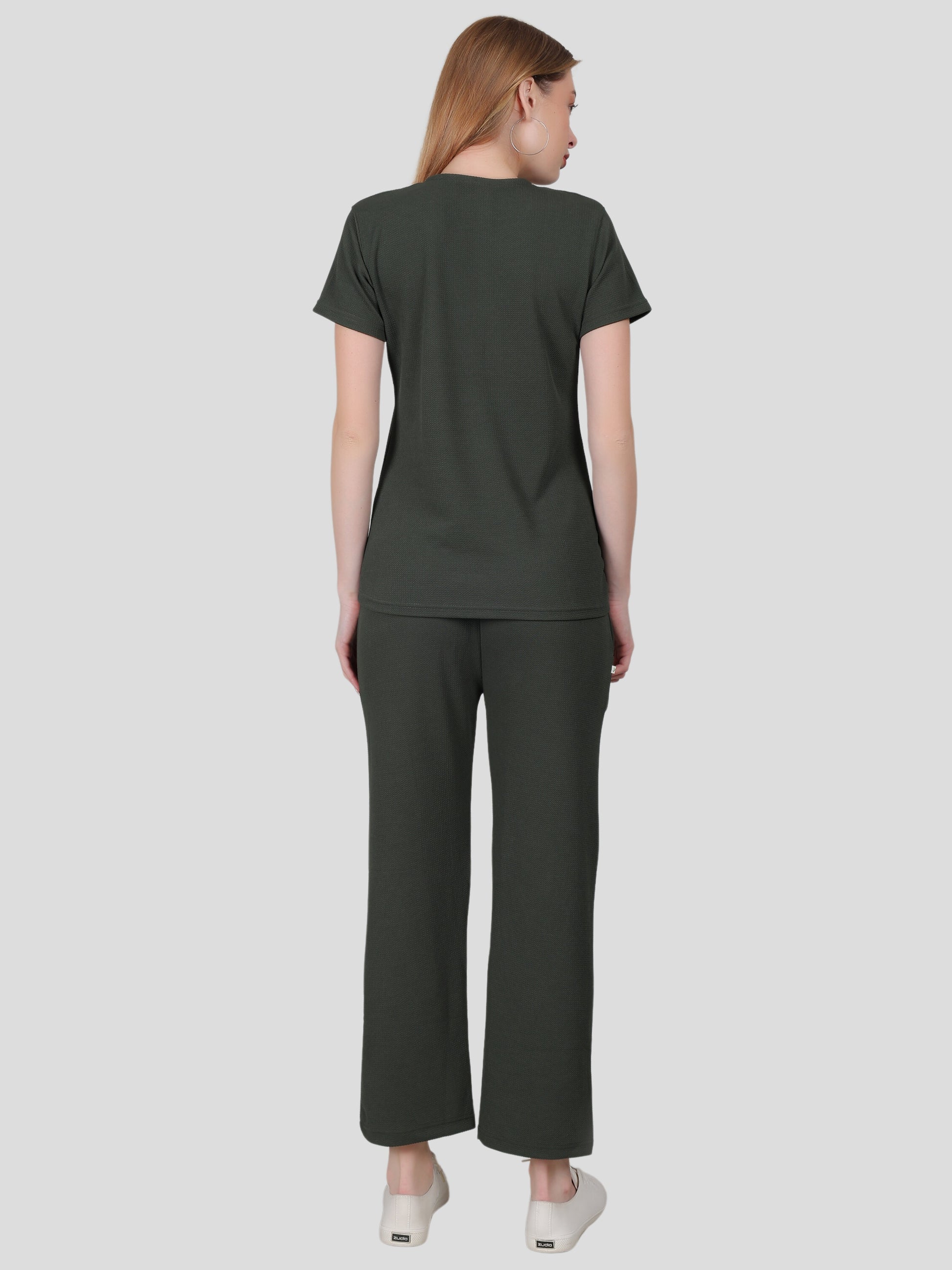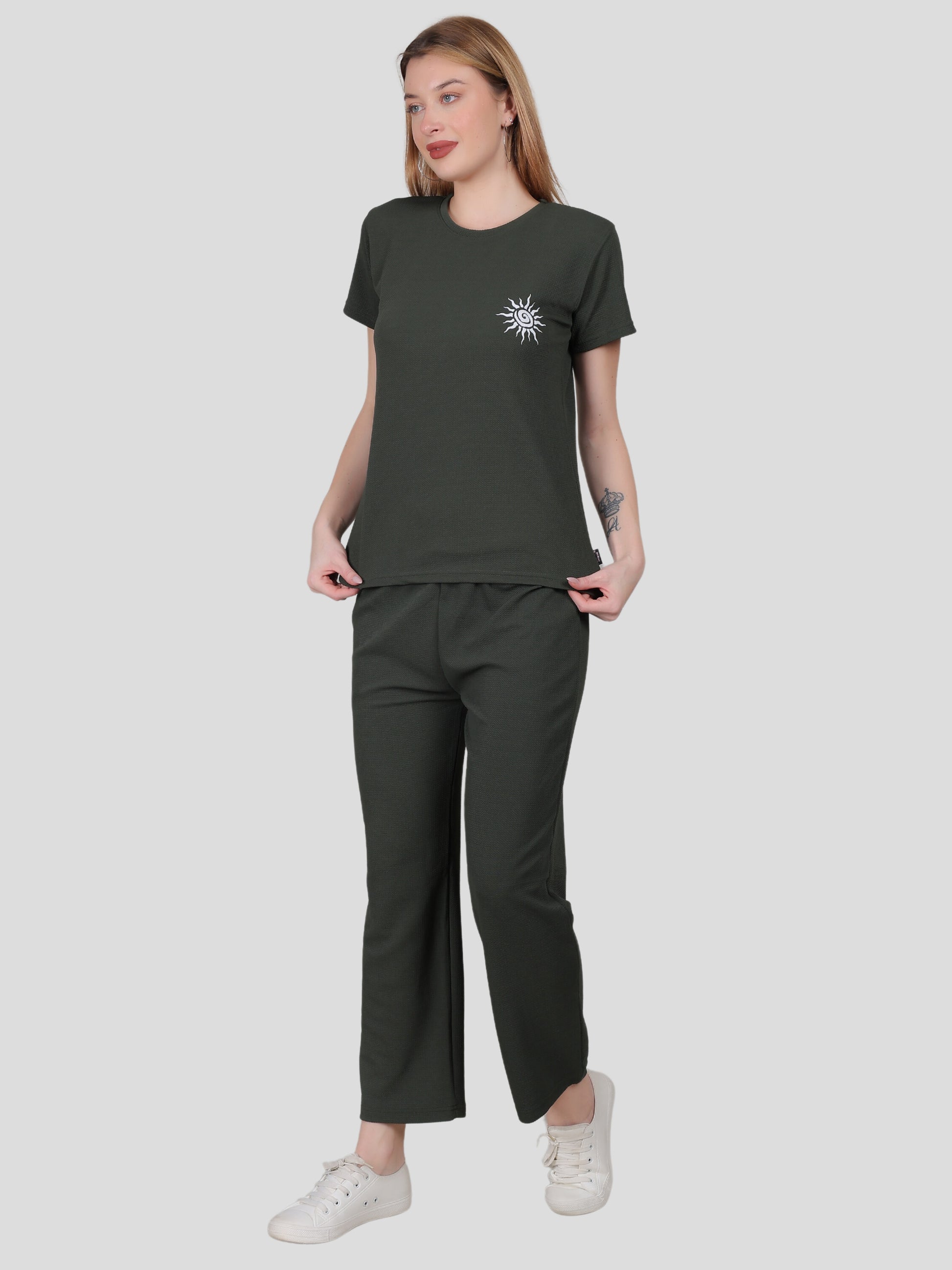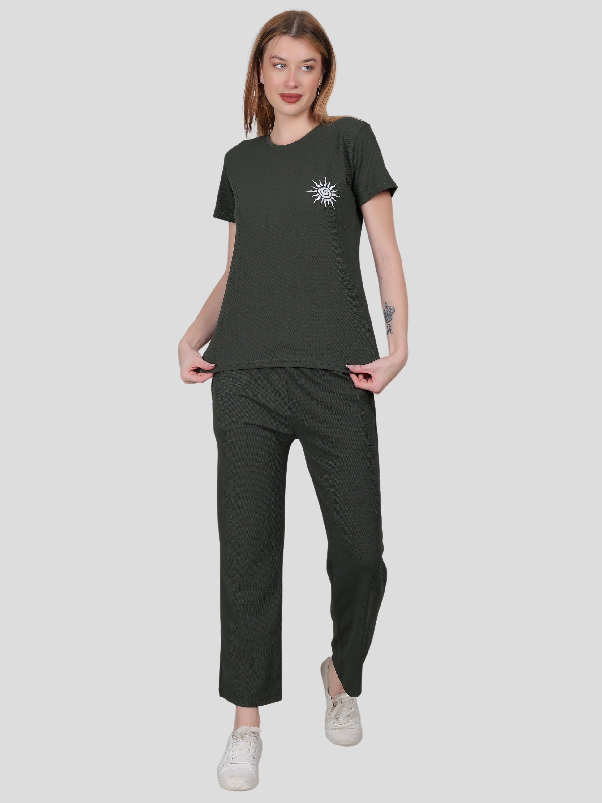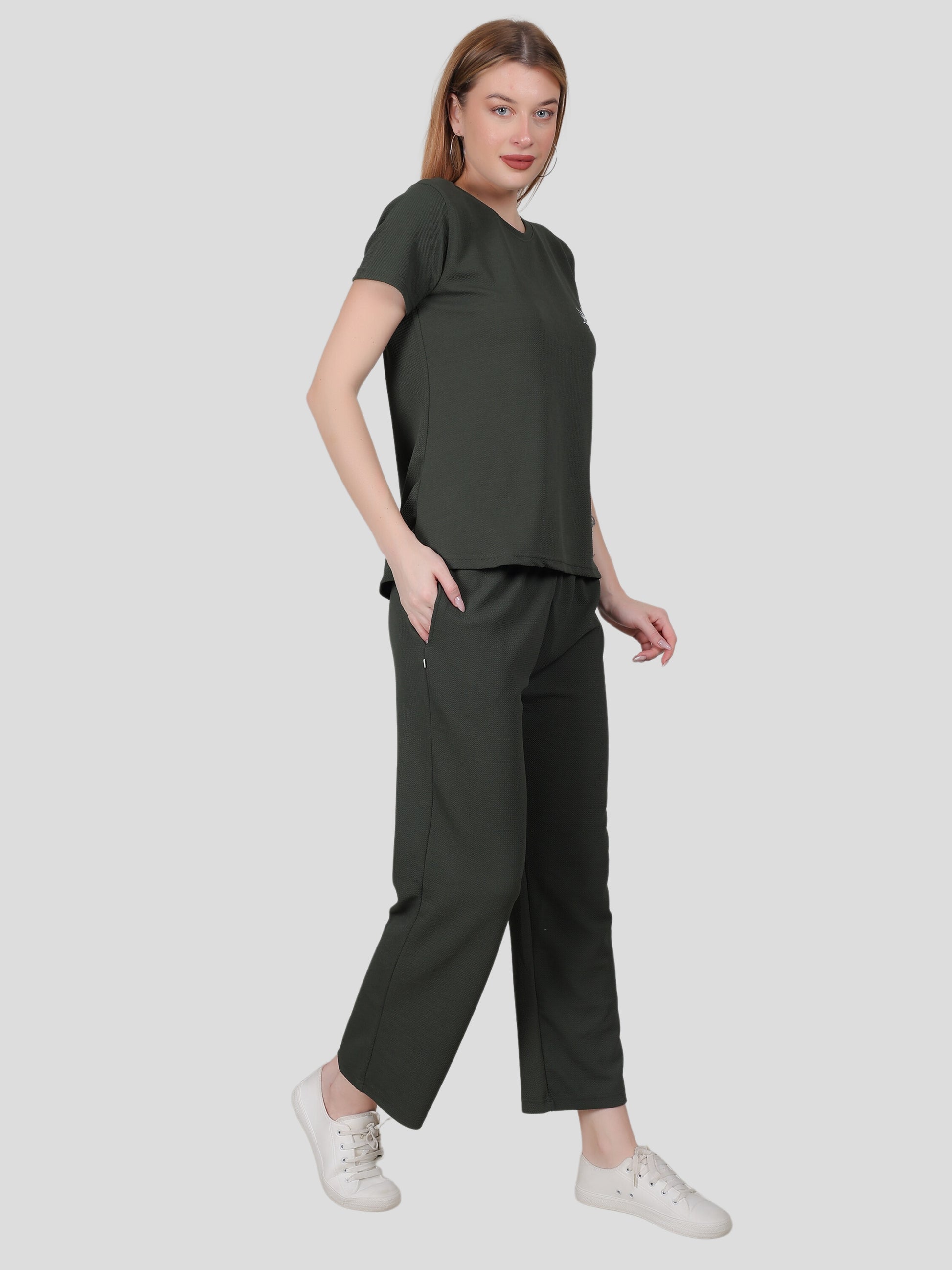 YOUTH ROBE Women's Loungewear Set , Co-Ord Set, Knit T-Shirt and Pants (Dark Green)