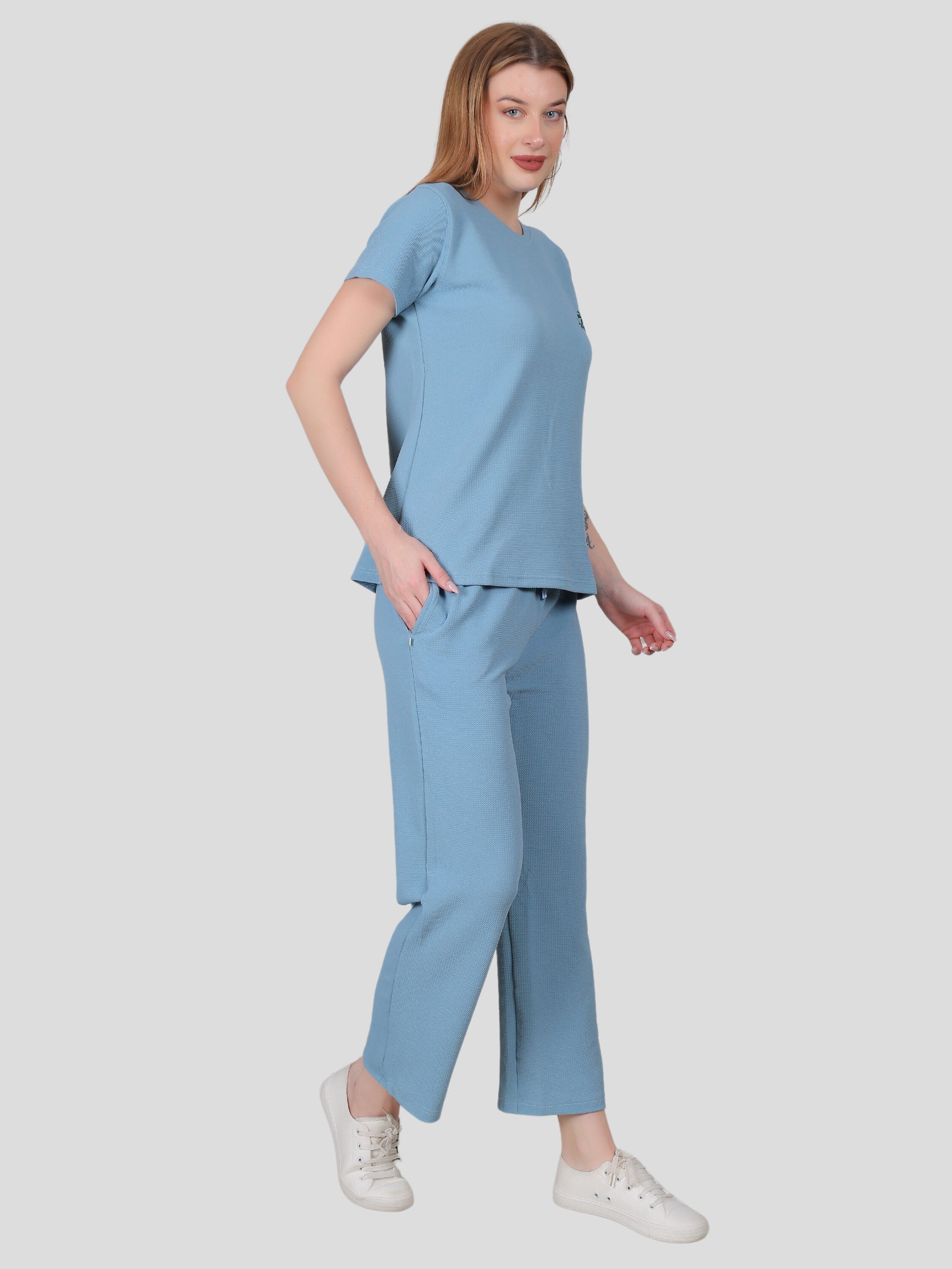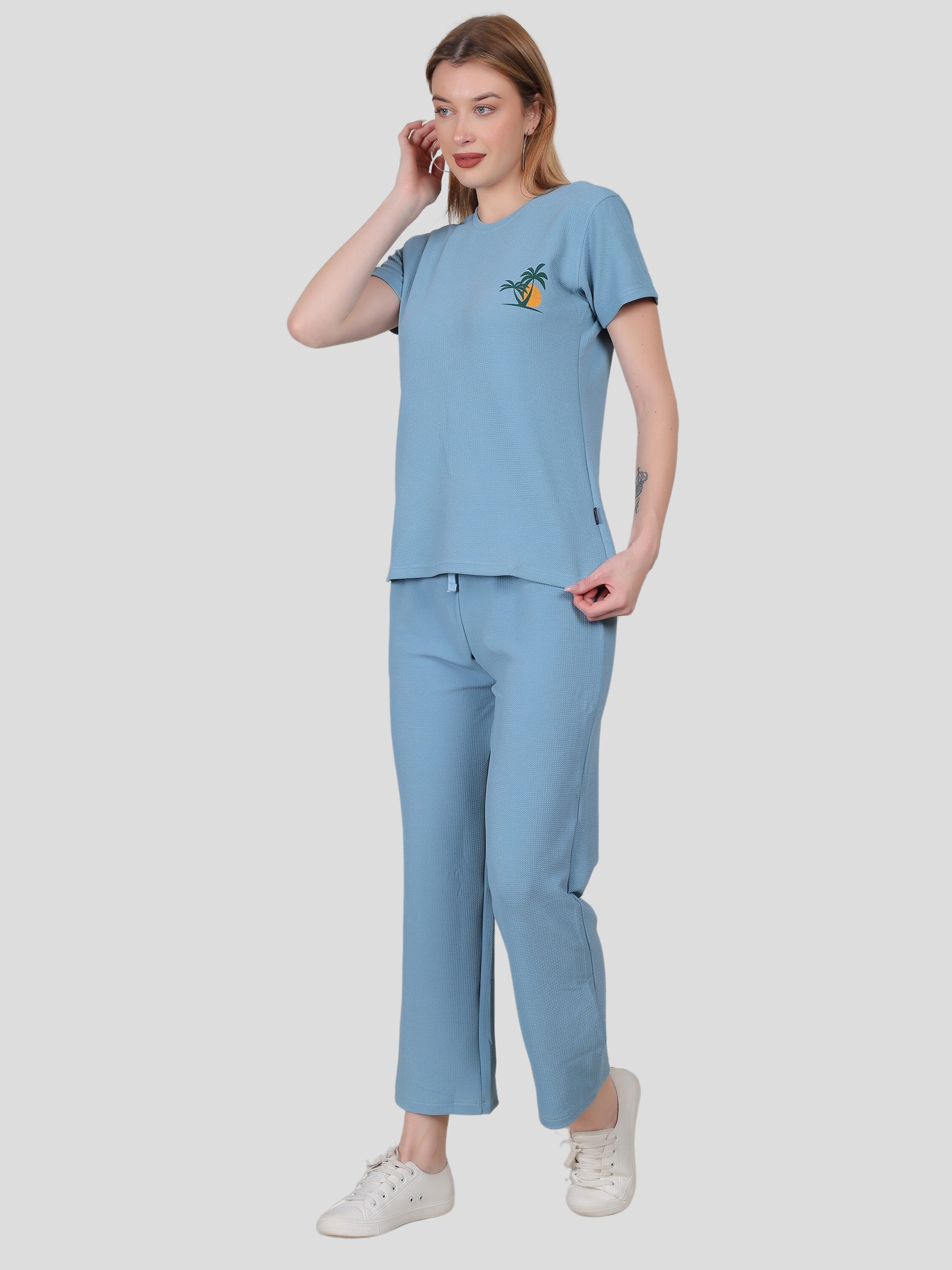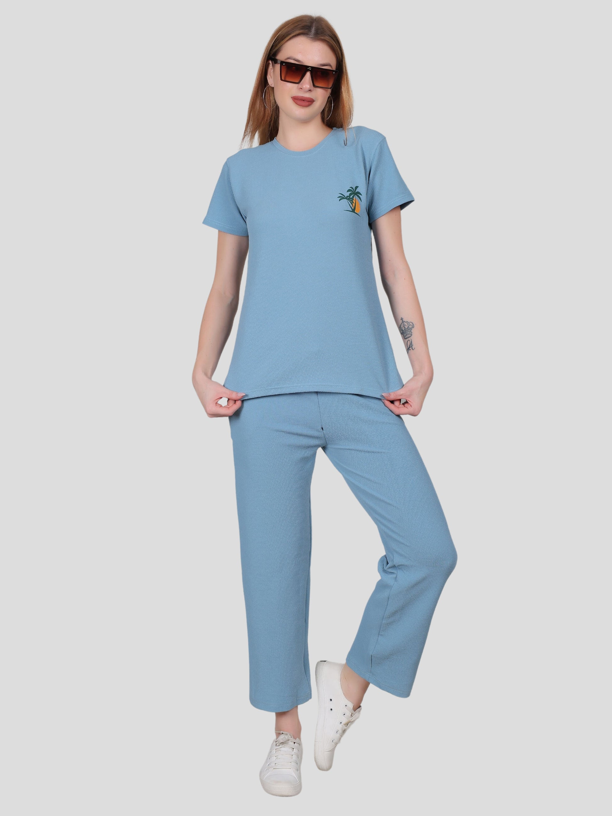 YOUTH ROBE Women's Loungewear Set , Co-Ord Set, Knit T-Shirt and Pants (Sky Blue)