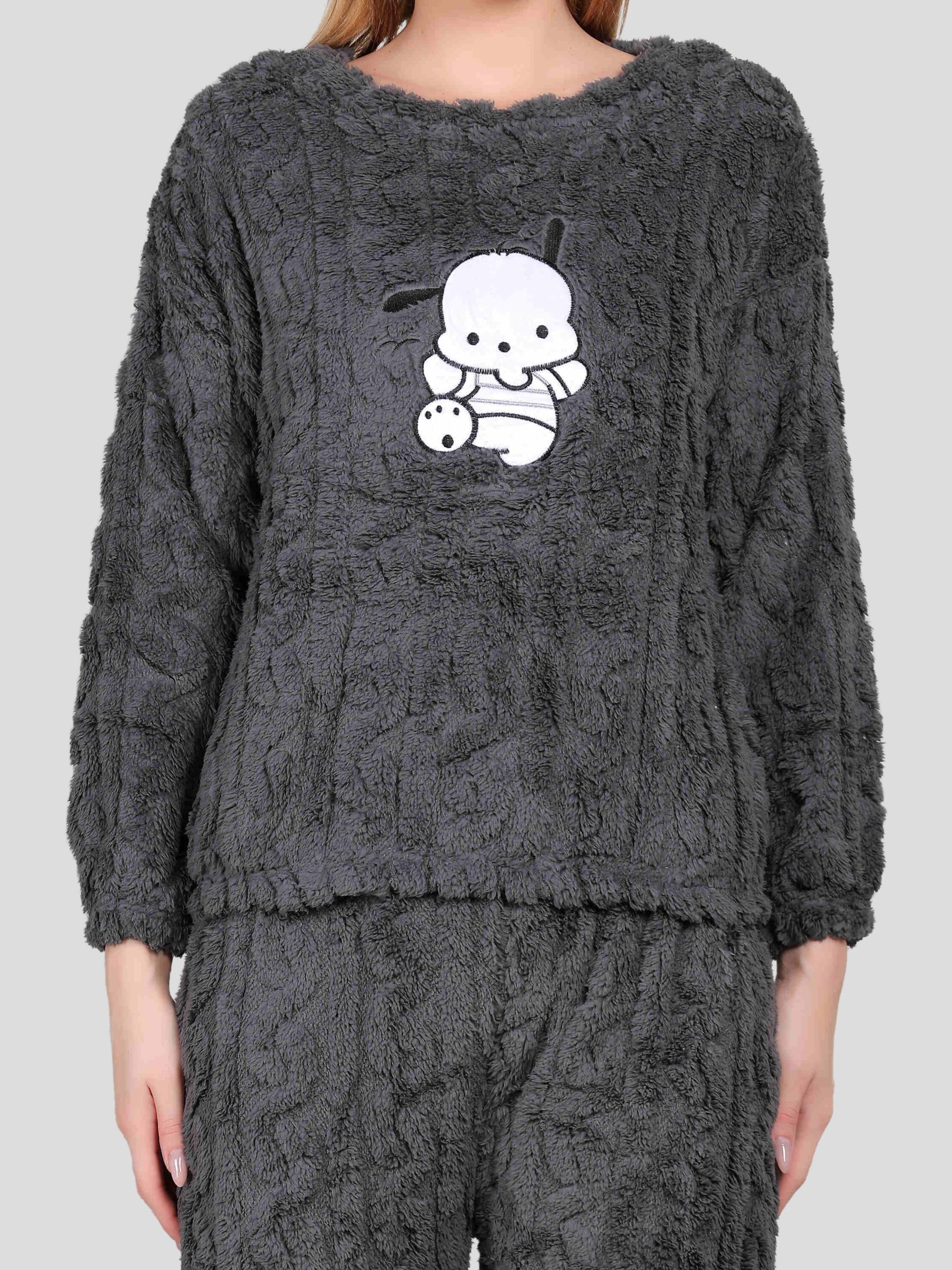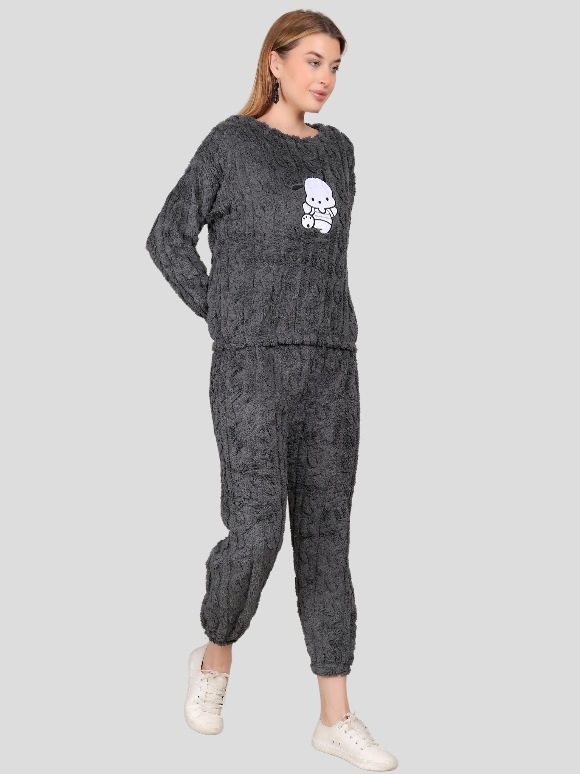 YOUTH ROBE Women's Teddy Woolen Top And Bottom Co-Ord Set (Grey)