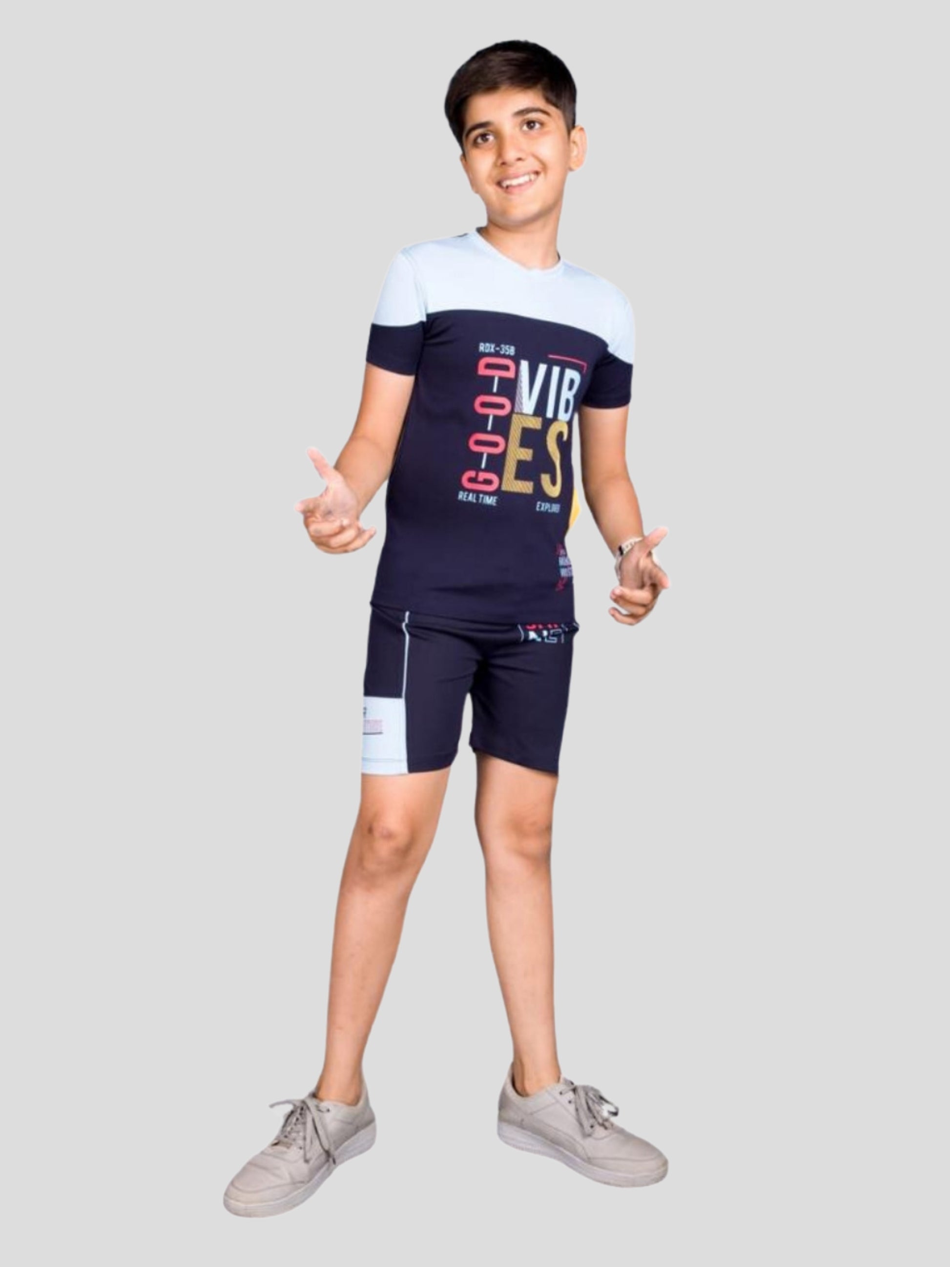 YOUTH ROBE Kids Multi-Color Co-Ord Set (Light Blue and Dark blue)