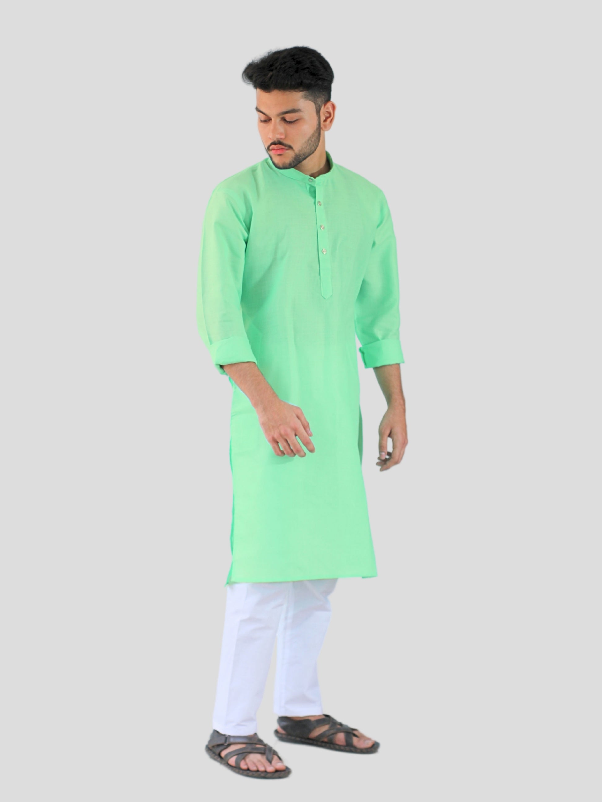 Elegant Design: Features a classic kurta with full sleeves and knee-length cut, paired with a matching pajama.