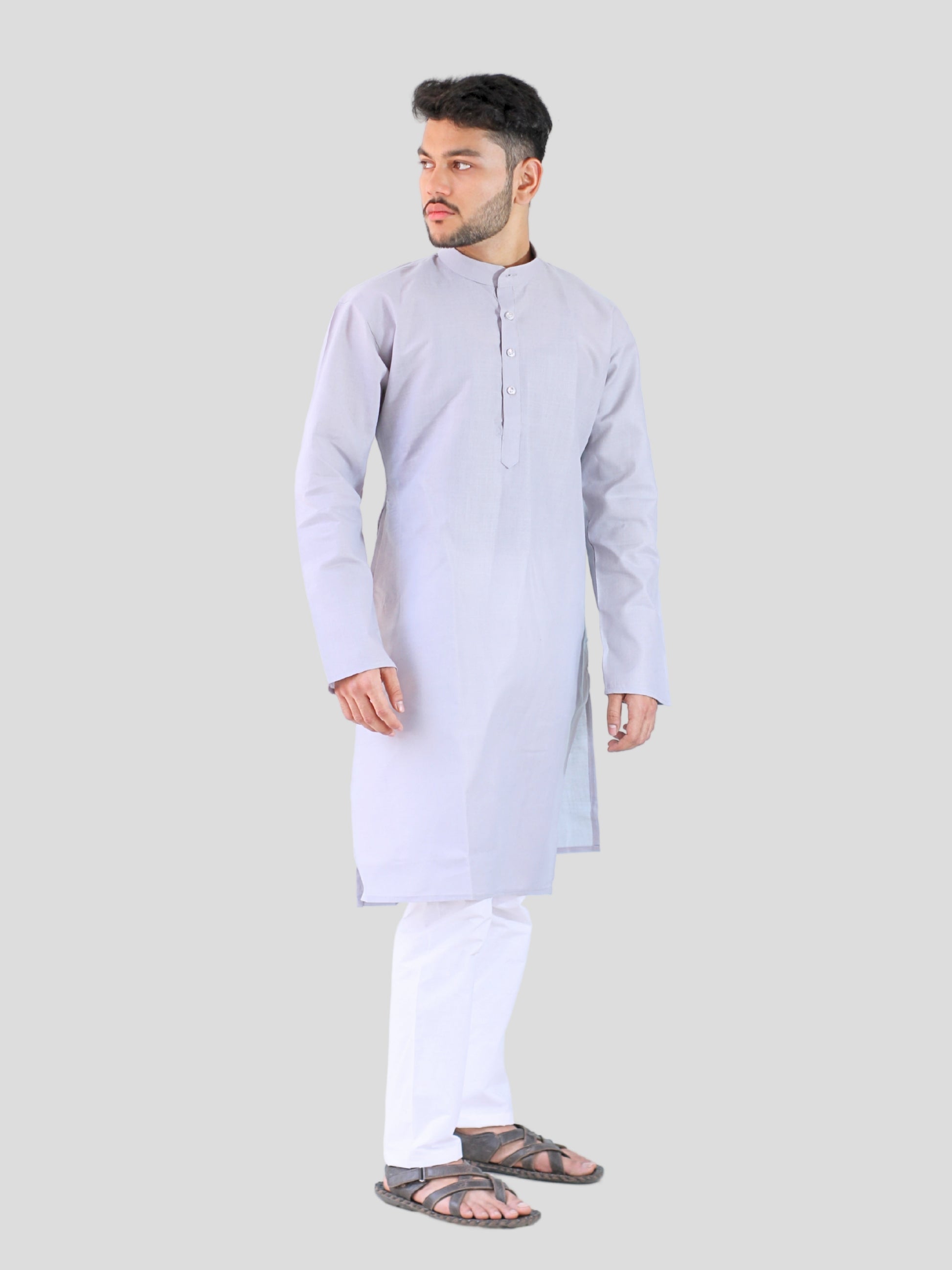 Elegant Design: Features a classic kurta with full sleeves and knee-length cut, paired with a matching pajama.