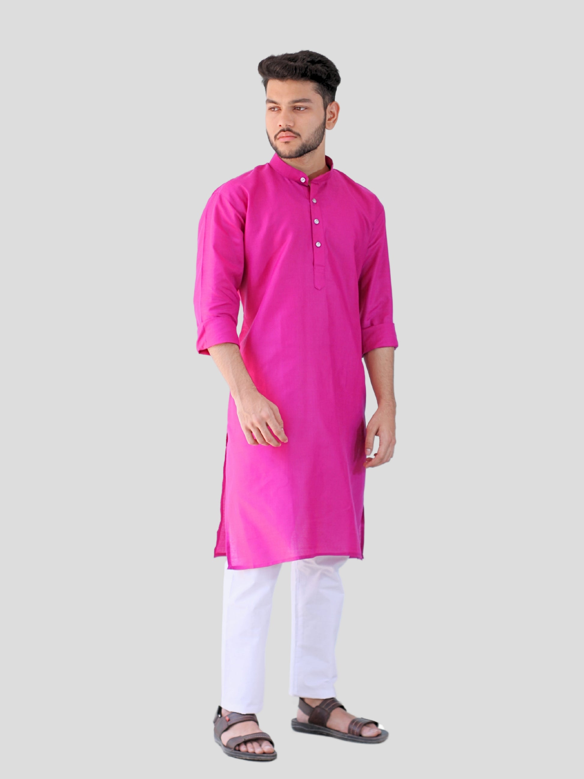 Elegant Design: Features a classic kurta with full sleeves and knee-length cut, paired with a matching pajama.