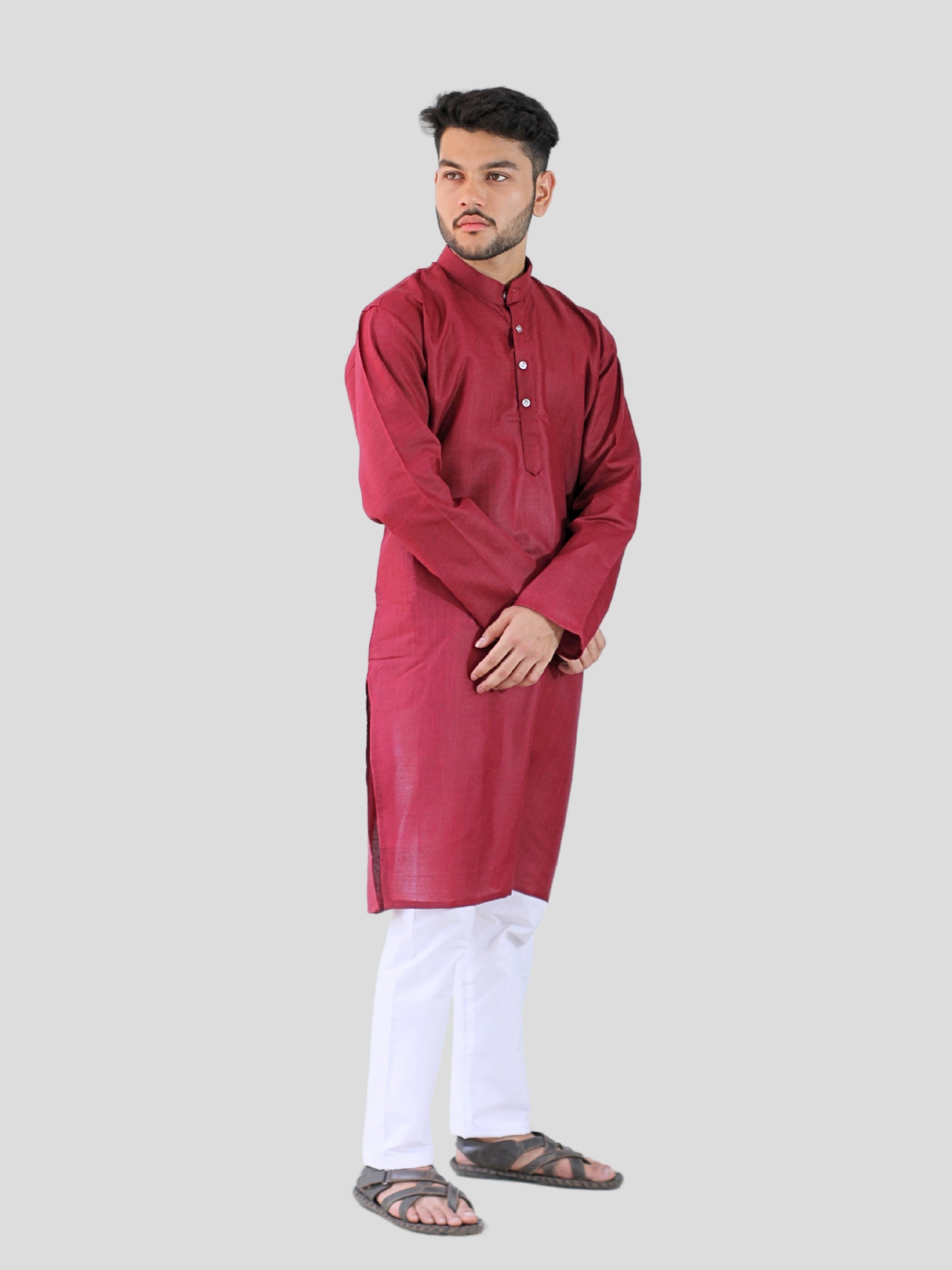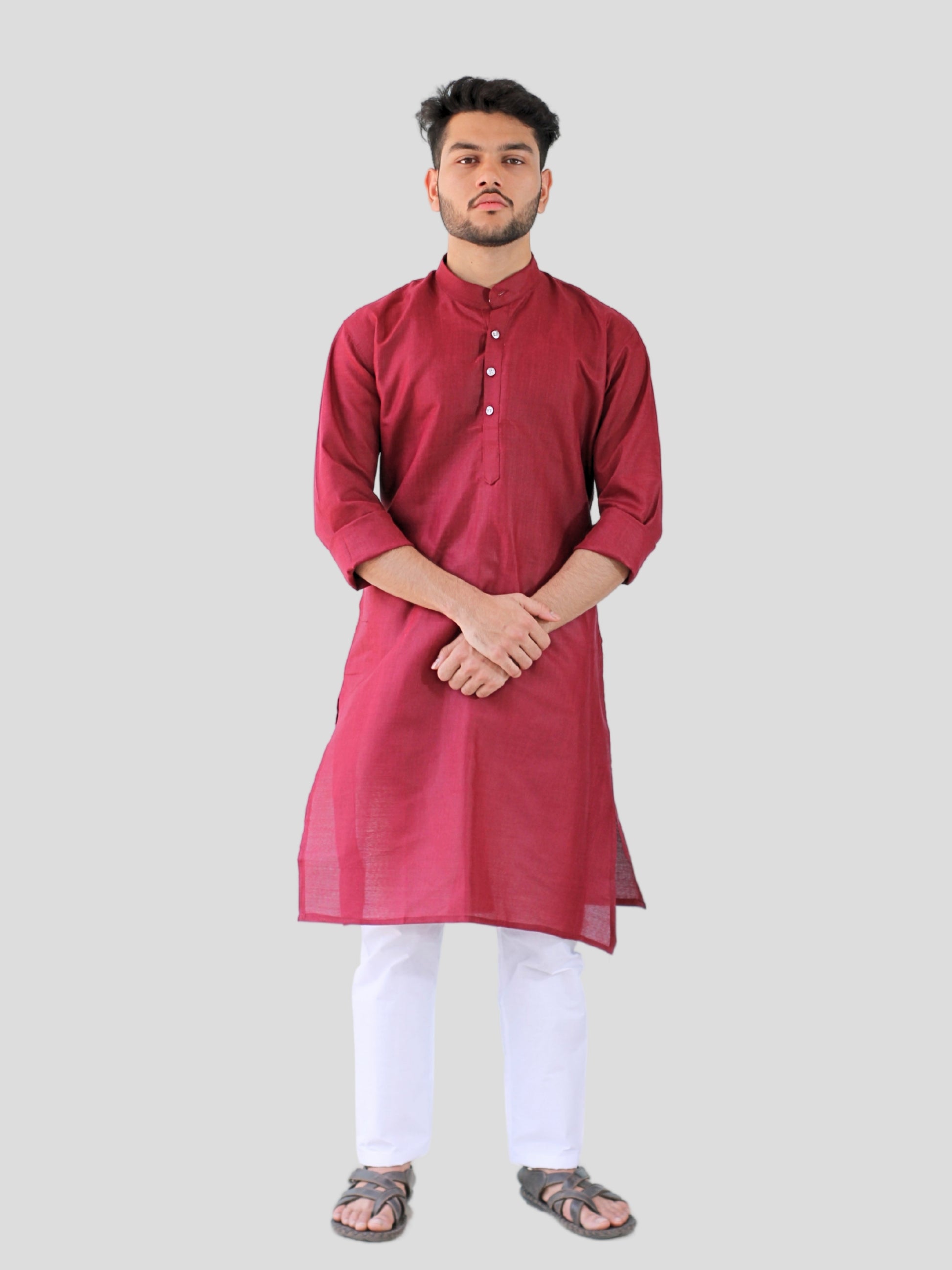 Elegant Design: Features a classic kurta with full sleeves and knee-length cut, paired with a matching pajama.