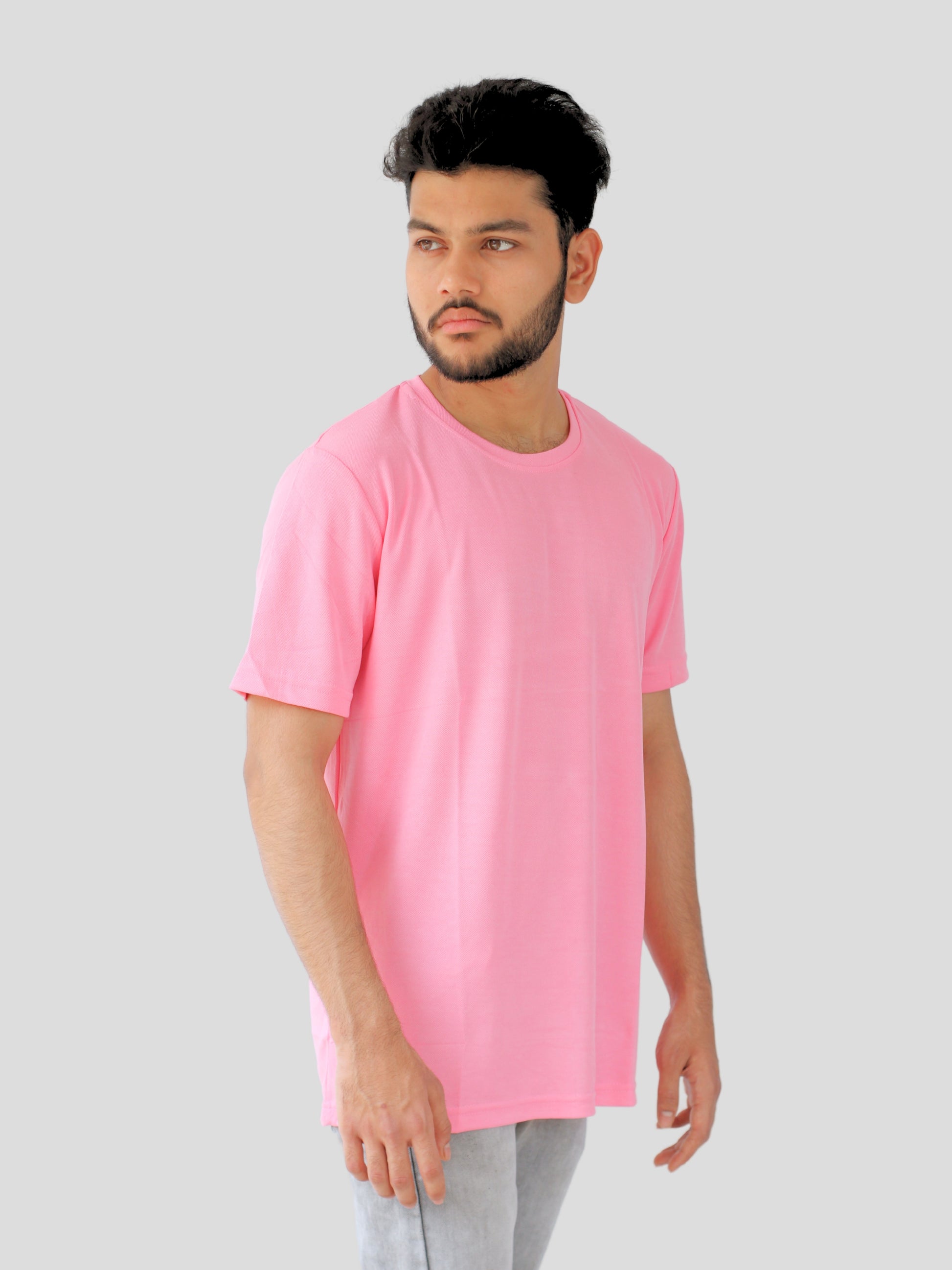 Youth Robe Men's Plain Round Neck T-Shirt (Pink)