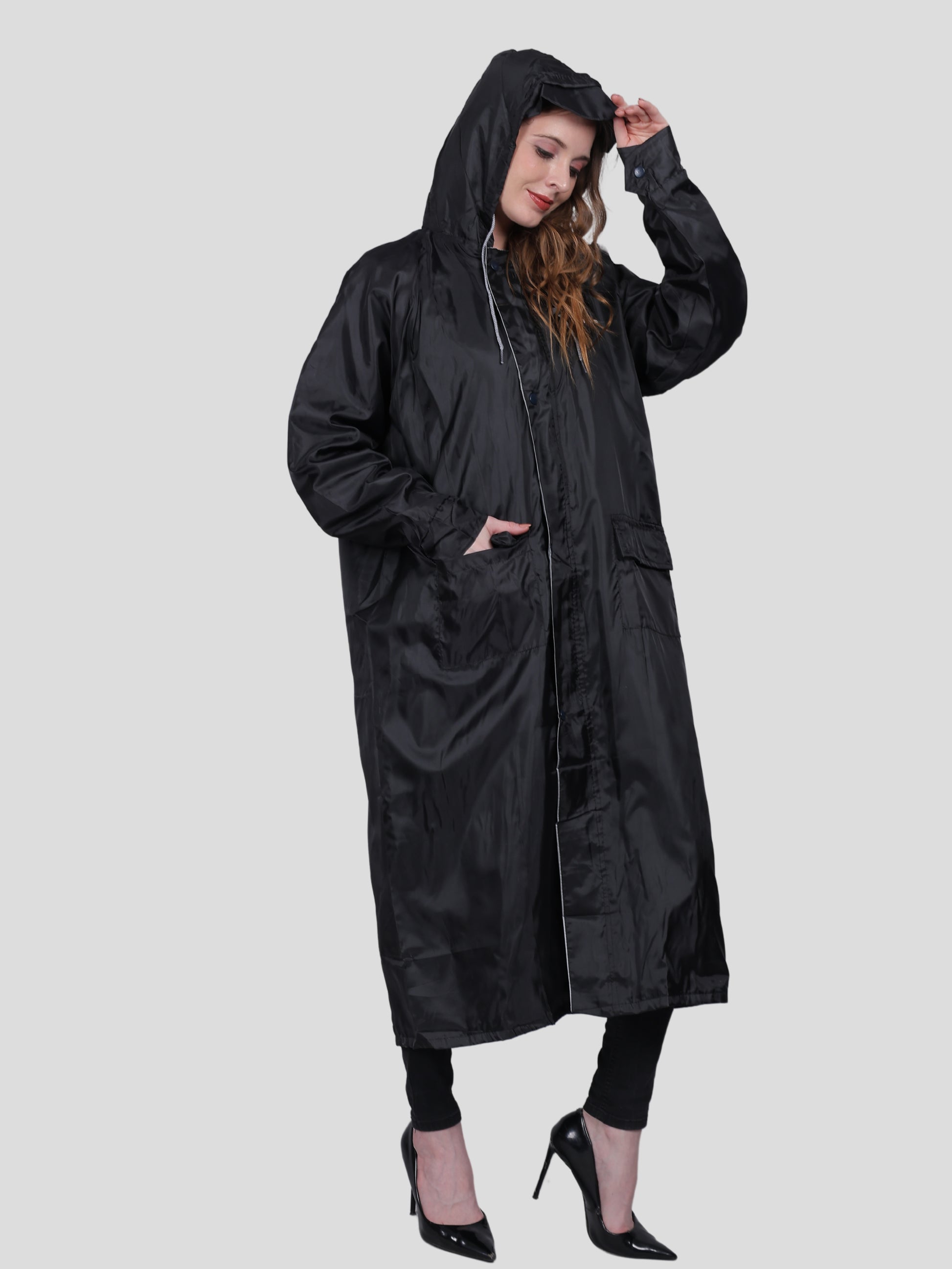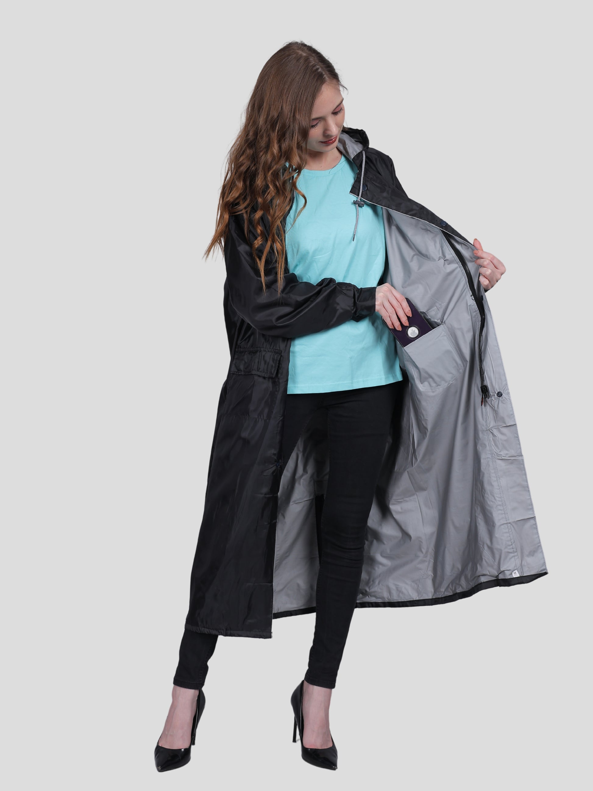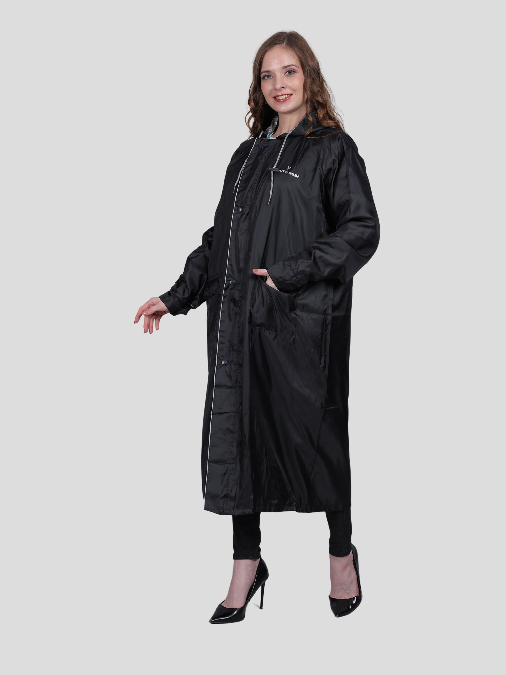 YOUTH ROBE Women's Long Raincoat (Black)